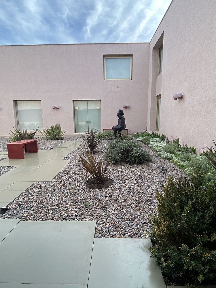 Museo Ralli Santiago cuenta en el primer piso con 9 salas que exhiben su Colección permanente de arte latinoamericano, seleccionada minuciosamente de su gran acervo. Junto a éstas, un jardín interior recientemente acondicionado y modernizado por la empresa de arquitectura y paisajismo Kamydesign [@kamydesign] a cargo de Javiera Ghiringhelli, quien comenta: “Para mí fue fascinante ser parte de este proyecto en el patio interior de Museo Ralli Santiago, ya que tuvimos que diseñar el paisaje de esta gran sala de exposición exterior dejando como elemento principal las esculturas, sin llamar la atención con las especies vegetativas ni el pavimento. A nivel constructructivo fue un trabajo bien desafiante ya que instalamos placas de hormigón de gran tonelaje al centro museo”.