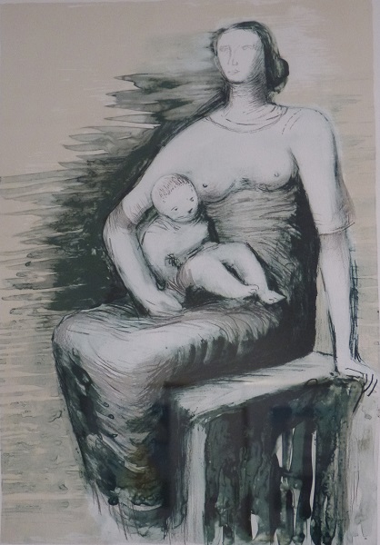 Moore, considerado como una de las figuras más importantes de la escultura moderna y precursor de la escultura pública monumental, es conocido principalmente por la abstracción de la figura humana en sus obras, compuestas por espacios vacíos y formas onduladas, en bronce y mármol de gran tamaño. A través de las cuales exploró sus temas preferidos, el desnudo femenino y las figuras madre e hijo. Si bien trató estos temas en su obra escultórica, éstos también fueron –durante su vejez- sus temas preferidos en su obra gráfica, en dibujos y en el grabado, el género menos conocido de su trabajo.