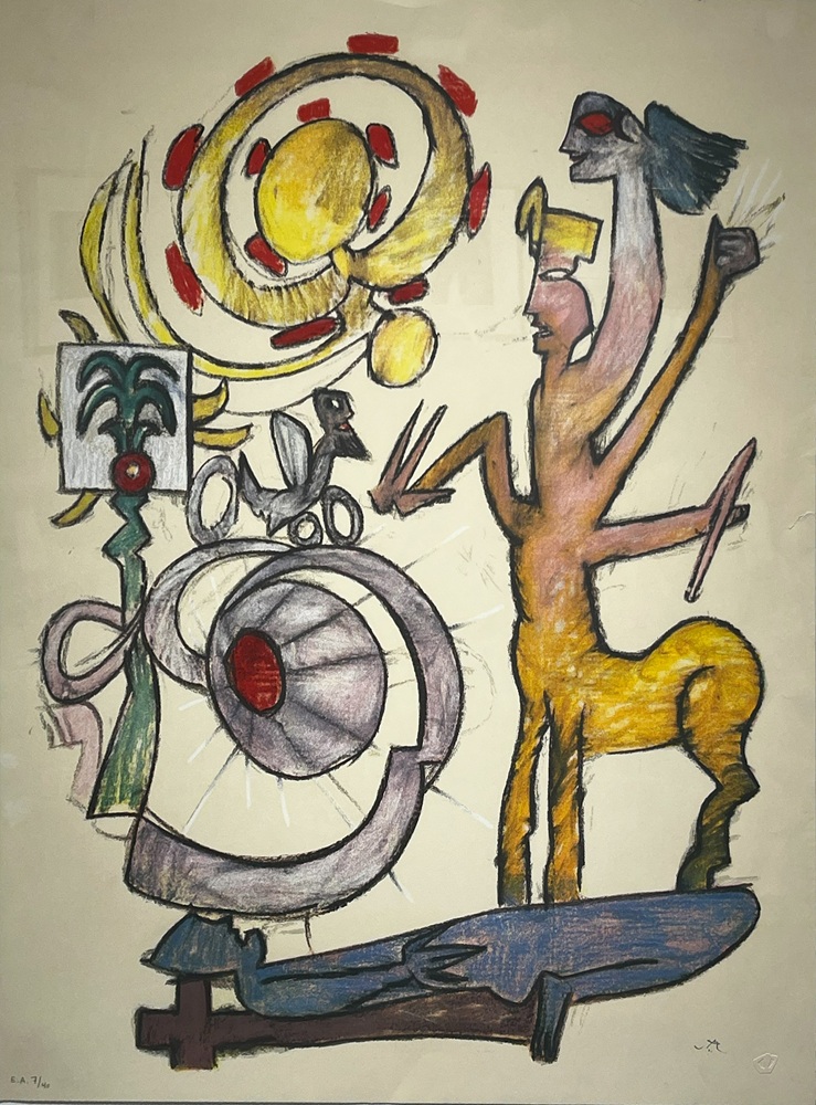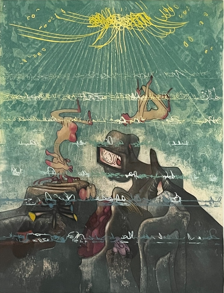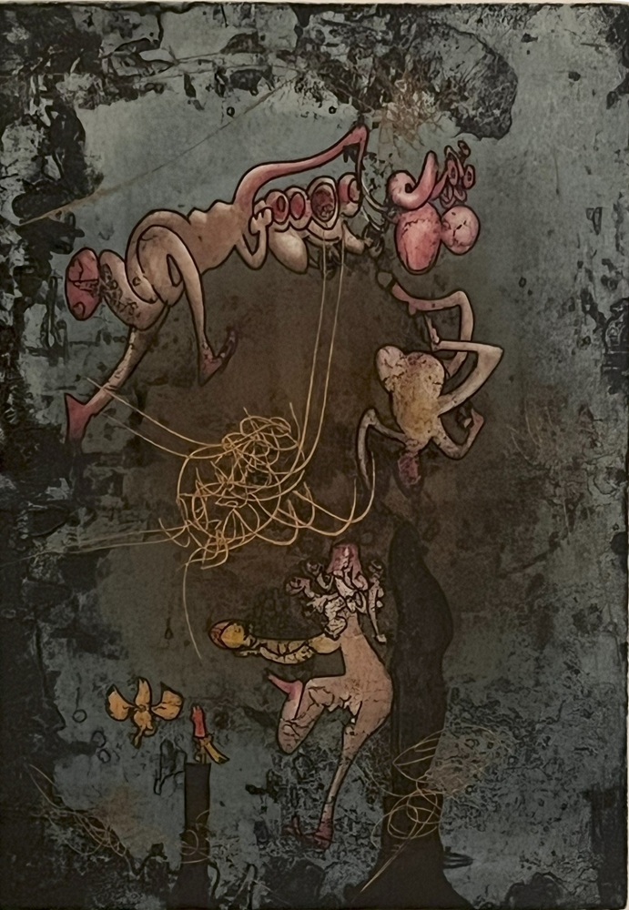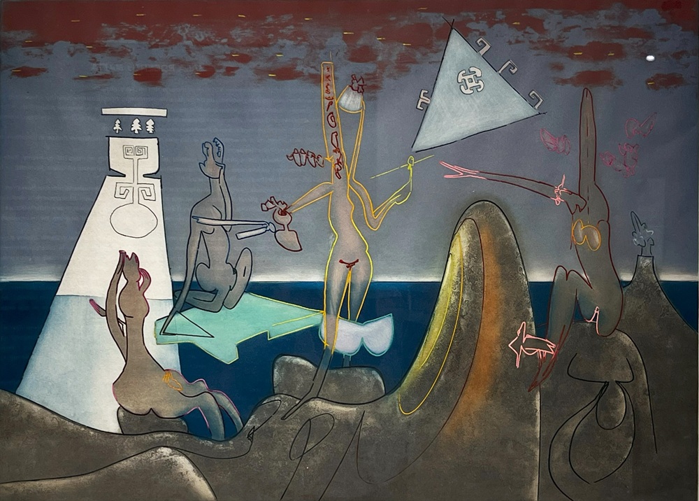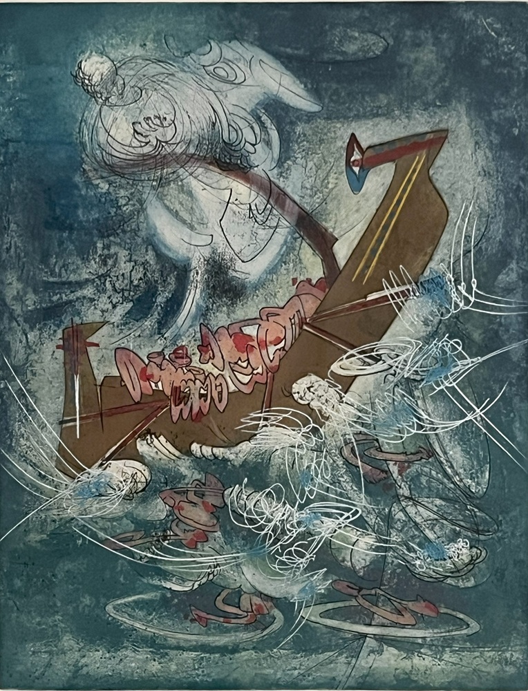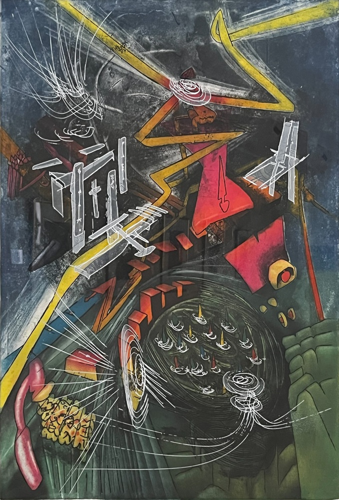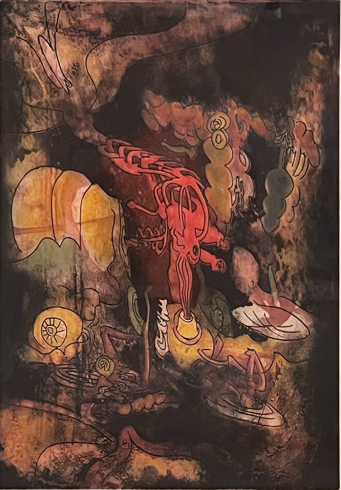 Justo Pastor Mellado propone dar visibilidad al carácter del trazo gráfico de Matta, de ahí el título “Del trazo al objeto”, en los trabajos sobre papel, soporte de las ediciones de grabados que se exhibirán. Pastor Mellado busca destacar el despliegue corporal de Matta y su intervención gestual a través de las técnicas del aguafuerte, el aguatinta, litografías y serigrafía. Técnicas que permiten reflexionar sobre la impronta del gesto gráfico, la huella pictórica sobre la lámina y superficie receptora de su escritura plástica. muestra nos invita a reflexionar en la impronta singular del gesto gráfico de Roberto Matta. La obra gráfica presente en Sala Matta de Museo Ralli Santiago exhibe 18 grabados en técnica de aguafuerte y aguatinta y 1 serigrafía, pertenecientes a las series Hom´mere I, Hom´mere II, L´arc obscur des heures, Réquiem pour la fin des temps, entre otras, que datan de las décadas de los años ´70 y´80.