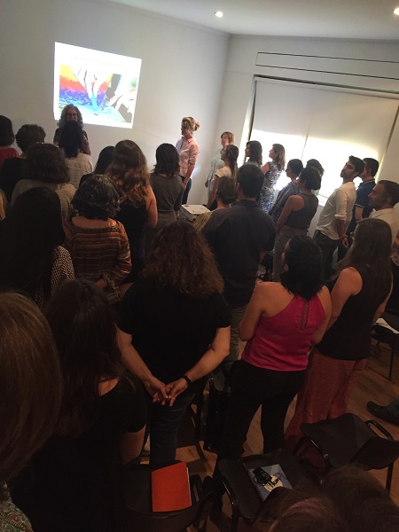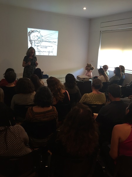 Durante este encuentro, la artista visual internacional y arteterapeuta neoyorkina, especializada en yoga, Karen Gibbons, realizó una conferencia sobre la observación consciente y el arte de respuesta, junto a un taller experimental para integrar de manera práctica los conceptos de mindfulness planteados en la jornada. Los participantes integraron las disciplinas del arte, psicología y ejercicios de relajación con las obras de la Colección Ralli, recorrieron las salas del museo, escogieron una obra, dibujaron y discutieron sobre arte, como instrumento para la construcción de significados y resolución de problemas.