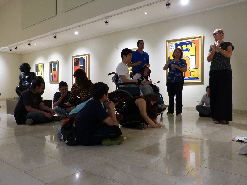 Durante el mes de octubre de 2019, Museo Ralli Santiago convocó a jóvenes del Taller de Arte de Fundación Teletón y Vitaintegración a participar de las visitas mediadas a cargo de Gesto Acción Cultural. Marike Gilles y Constanza González establecieron nuevas aproximaciones a las obras exhibidas en las Salas Calder y Manuel Pailós pertenecientes a la Colección Ralli. Esta innovadora propuesta de @GestoCultural permitió que los asistentes disfrutaran de actividades lúdicas que fomentaran su imaginación, abrieran un diálogo aportando con sus vivencias, conocimientos, percepciones y posibles lecturas para poder así, acceder a nuevas experiencias participativas compartidas en grupo.