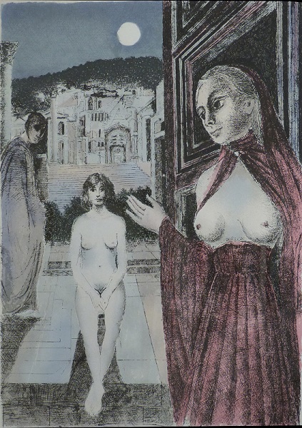 Paul Delvaux, Bélgica. Reine de Saba, litografía, 75 x 56 cms. 1982