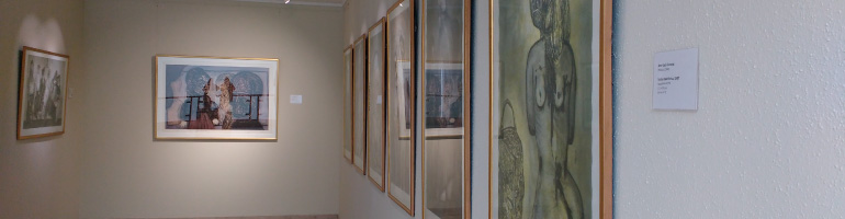 La sala dedicada al artista mexicano José Luis Cuevas, en donde se exhiben una serie de siete grabados sobre metal, agrupados bajo el nombre de “Suite madrileña”, realizados a técnica de aguatinta y aguafuerte entre septiembre y octubre de 1987 en Madrid, España, es una colección que se destaca a primera vista tanto por sus dimensiones de 1.21 metros de alto por 80 centímetros de ancho, como por su estética sombría y el dominio pleno de las técnicas de grabado en superficies metálicas.