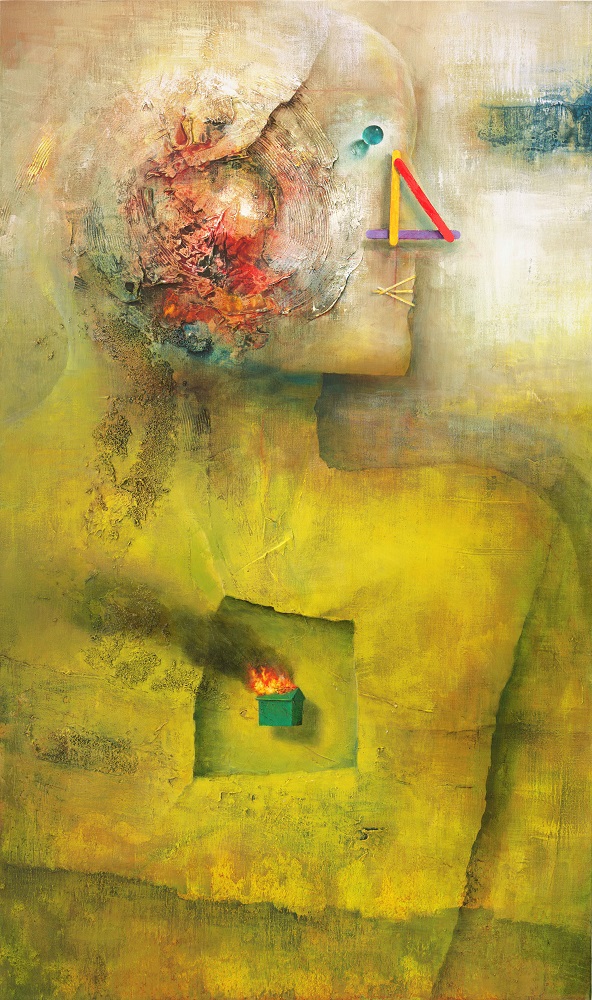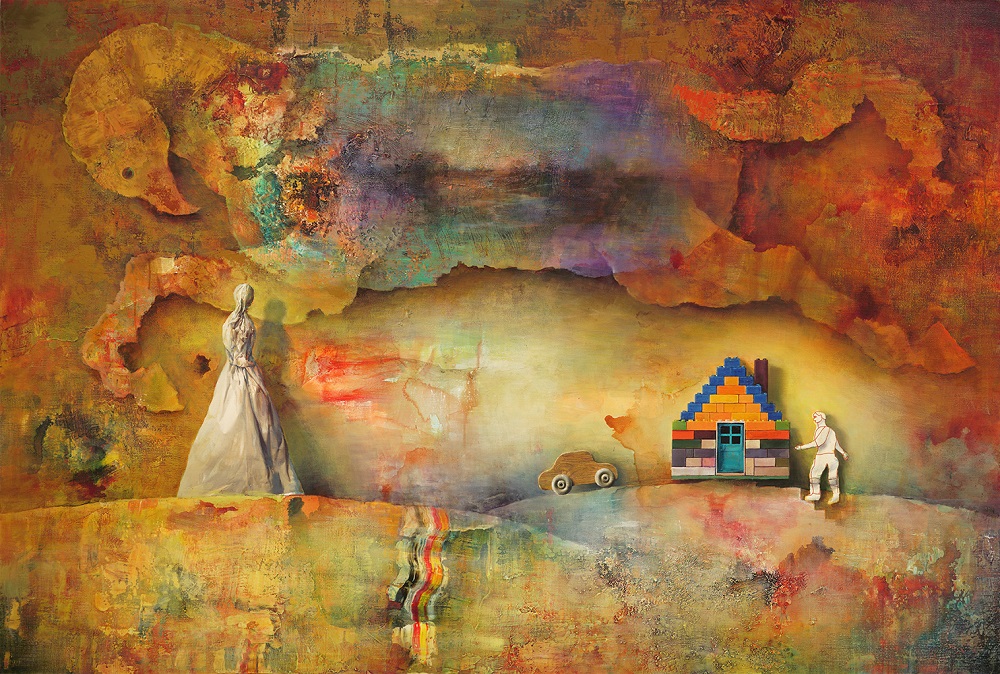 El eje central de esta nueva muestra está enfocado en torno a la casa. Sobre ésta, el artista señala: “La casa ha estado presente antes en mi obra, pero solo de manera supeditada a una voluntad de ordenar composiciones de forma vertical. Sin embargo, a partir del trabajo colaborativo con mi hija (quien en sus estudios universitarios comenzó a trabajar de manera independiente ´la casa´ como un elemento iconográfico en tanto que simbolismo del propio cuerpo,) el integrar elementos relacionados a la casa—también relegada a ese vínculo familiar— se fue haciendo más y más deliberado”.