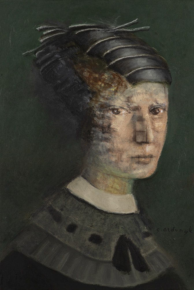 Aldunate, pintora, dibujante y profesora chilena, es oriunda de Viña del Mar (1940) y desde sus inicios en el arte se ha dedicado a retratar a la mujer, sus emociones, mundo interno, virtudes y contradicciones. Recuerdos que dejan huellas y cicatrices que son escondidos bajo máscaras y cubiertos con ropajes, vendas, tocados y sombreros.