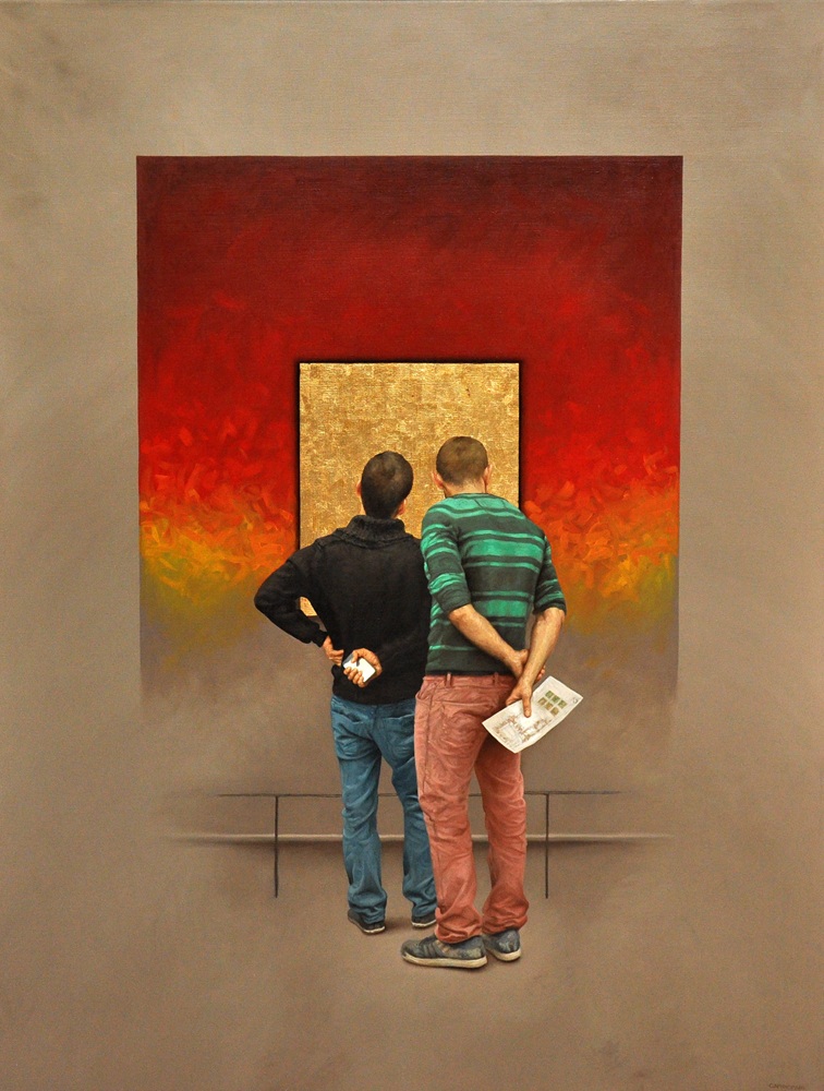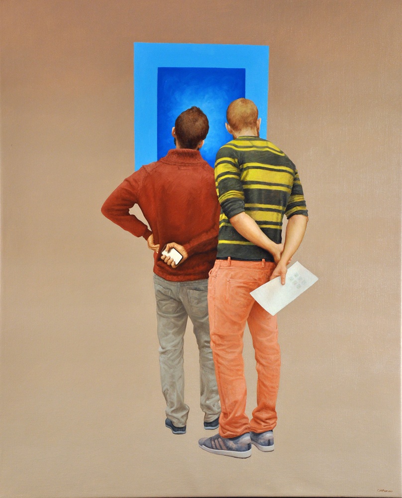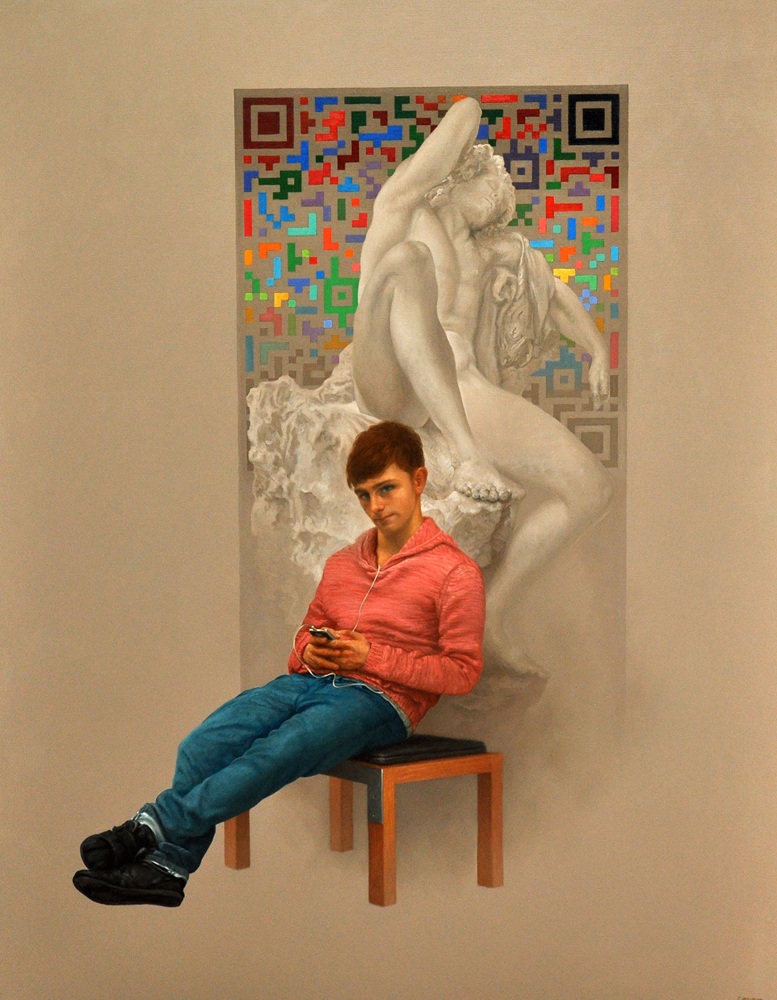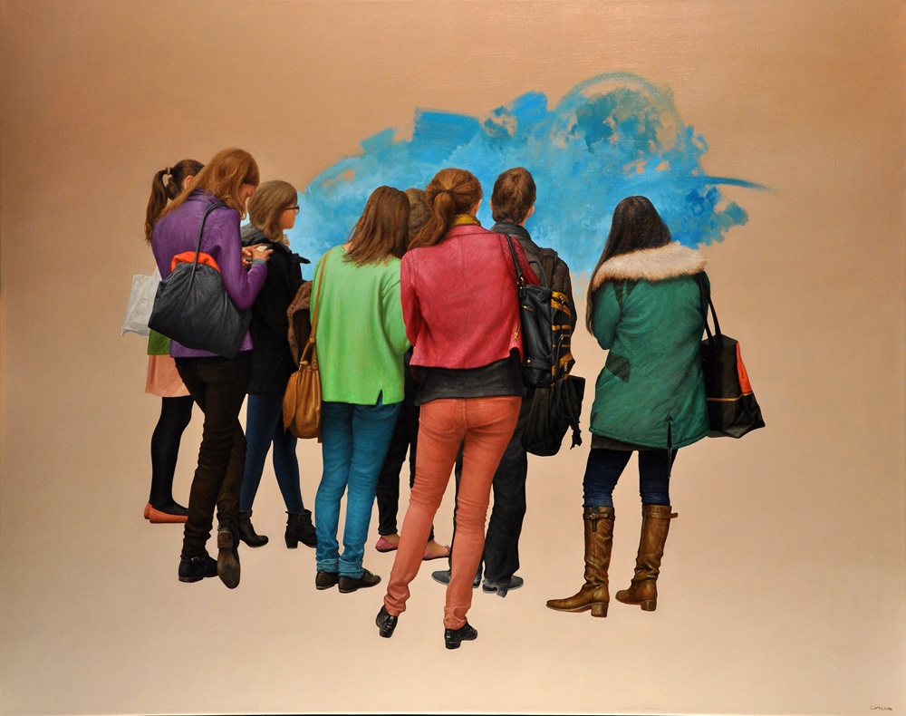 Campuzano, gran observador de la actualidad, aborda el creciente poder de alienación de la tecnología de los móviles sobre la conducta humana, el cual ha invadido todos los ámbitos, incluidos los museos: “El género del autorretrato nació en el Renacimiento, cuando la Historia del Arte iniciaba su conversión a la historia misma de los artistas, de una manera explícita o camuflada en medio de una escena. Fueron muchos los pintores que usaron su propia imagen como modelo para sus creaciones, dando paso a una gran cantidad de motivos profundos y dramáticos que ellos buscaban plasmar, provocando que el autorretrato sea uno de los géneros más fascinantes e interesantes en la historia de la pintura”, comenta Campuzano.