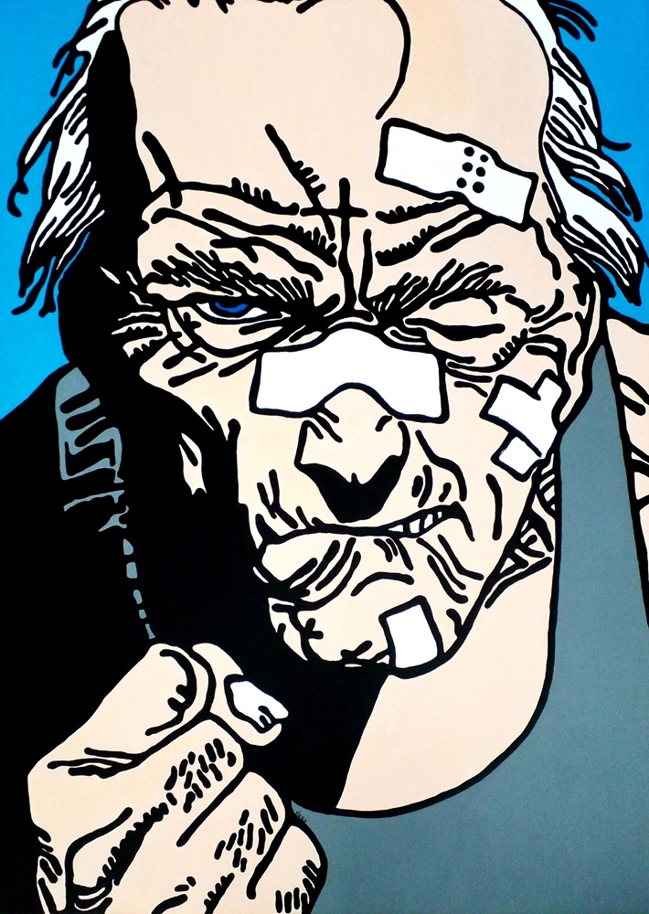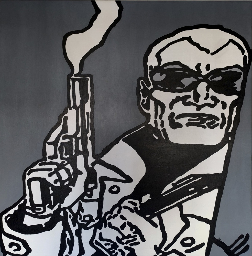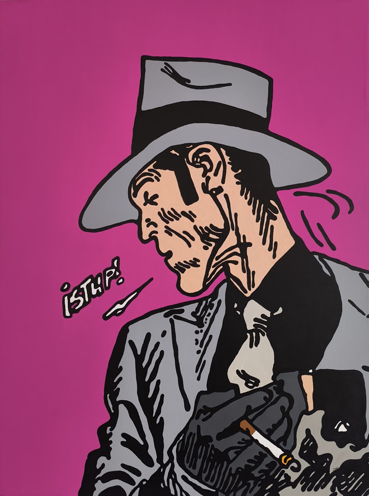 Una selección de 16 obras, de este gran proyecto, será exhibida en Sala 4 de #MuseoRalliSantiago y presentará pinturas que reinterpretan viñetas de los personajes más representativos del comic, destacando los del género noir, hardboiled, la ficción de las revistas pulp con detectives como Dick Tracy (1931), The Phantom (1936), The Spirit (1940) o Diabolik (1962); figuras emblemáticas modernas como Roschach de Watchmen (1987), Marv de Sin City (1991) o Hellboy (1993). Con estas obras, Virro homenajea a los antihéroes y villanos en un estilo Pop Art realizando un nexo entre la nostalgia de las historietas antiguas con personajes más actuales.