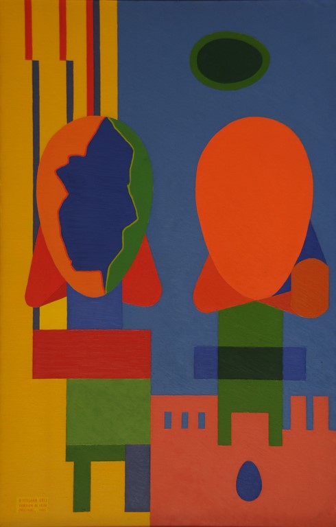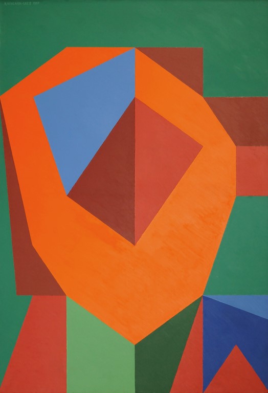 3.- “Geometría andina” que ejecuta el artista, especialmente en su última etapa. Libera el cromatismo, acerca sus temáticas a los pueblos originales andinos, tornándolas casi figurativas.
